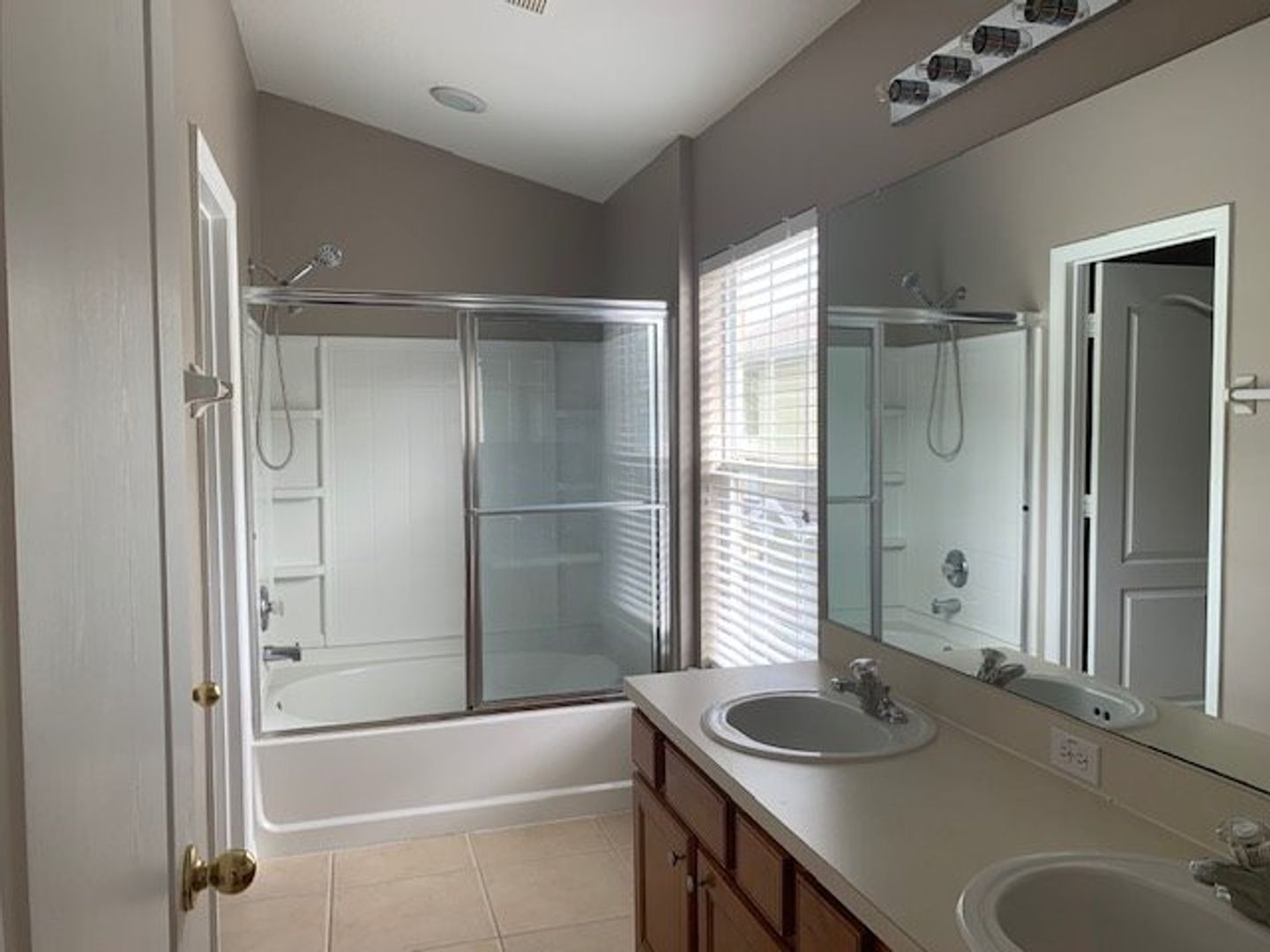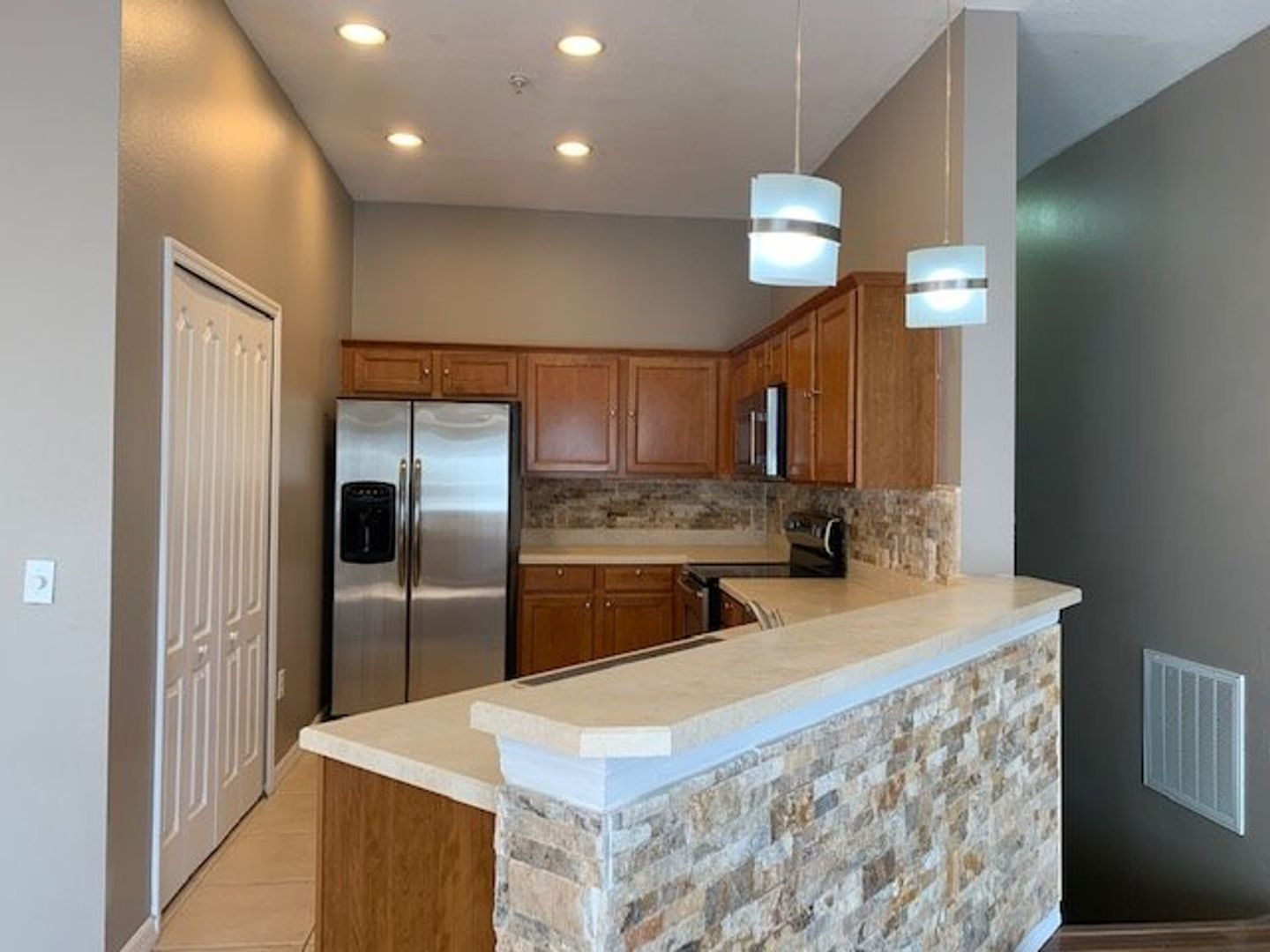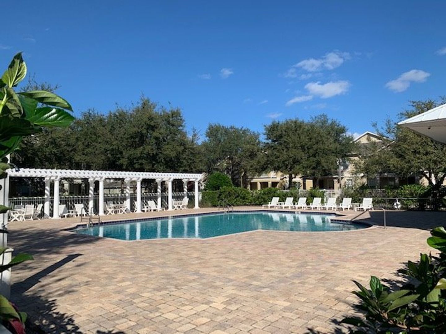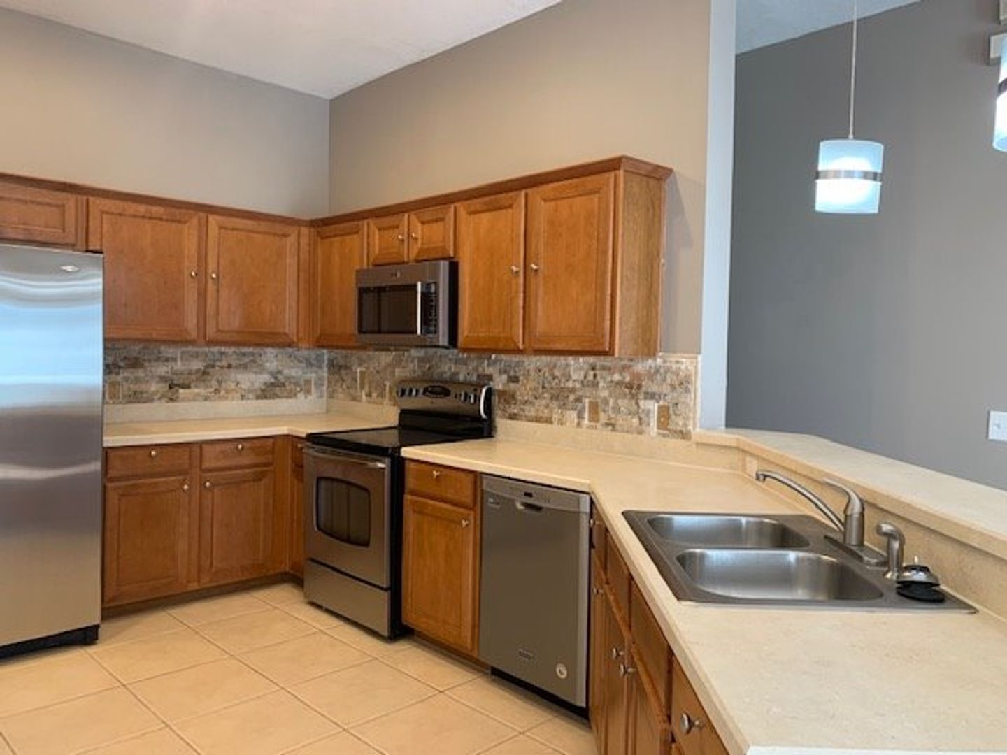 Discover this beautiful 2/2 condo in the sought-after Harmony neighborhood! As you enter, ascend the stairs to an open floor plan, featuring the master bedroom on one side and the guest room, guest bathroom, and laundry room on the other. The main living area, central dining room, and kitchen lead out to quaint mini balconies through glass sliders. The kitchen boasts brick details at the bar and backsplash, complemented by stainless steel appliances. Includes a one-car rear entry garage, driveway, and permitted street curb parking. Small pets are welcome. Enjoy two community pools, a championship golf course, a fitness center, restaurants, and electric boats at Buck Lake for your leisure. Schedule your viewing today to see this attractive condo!