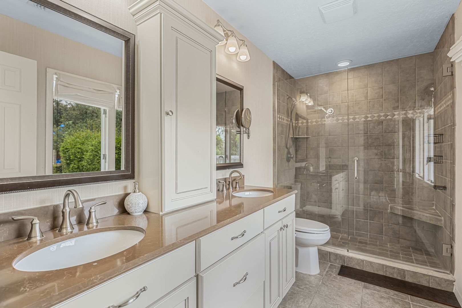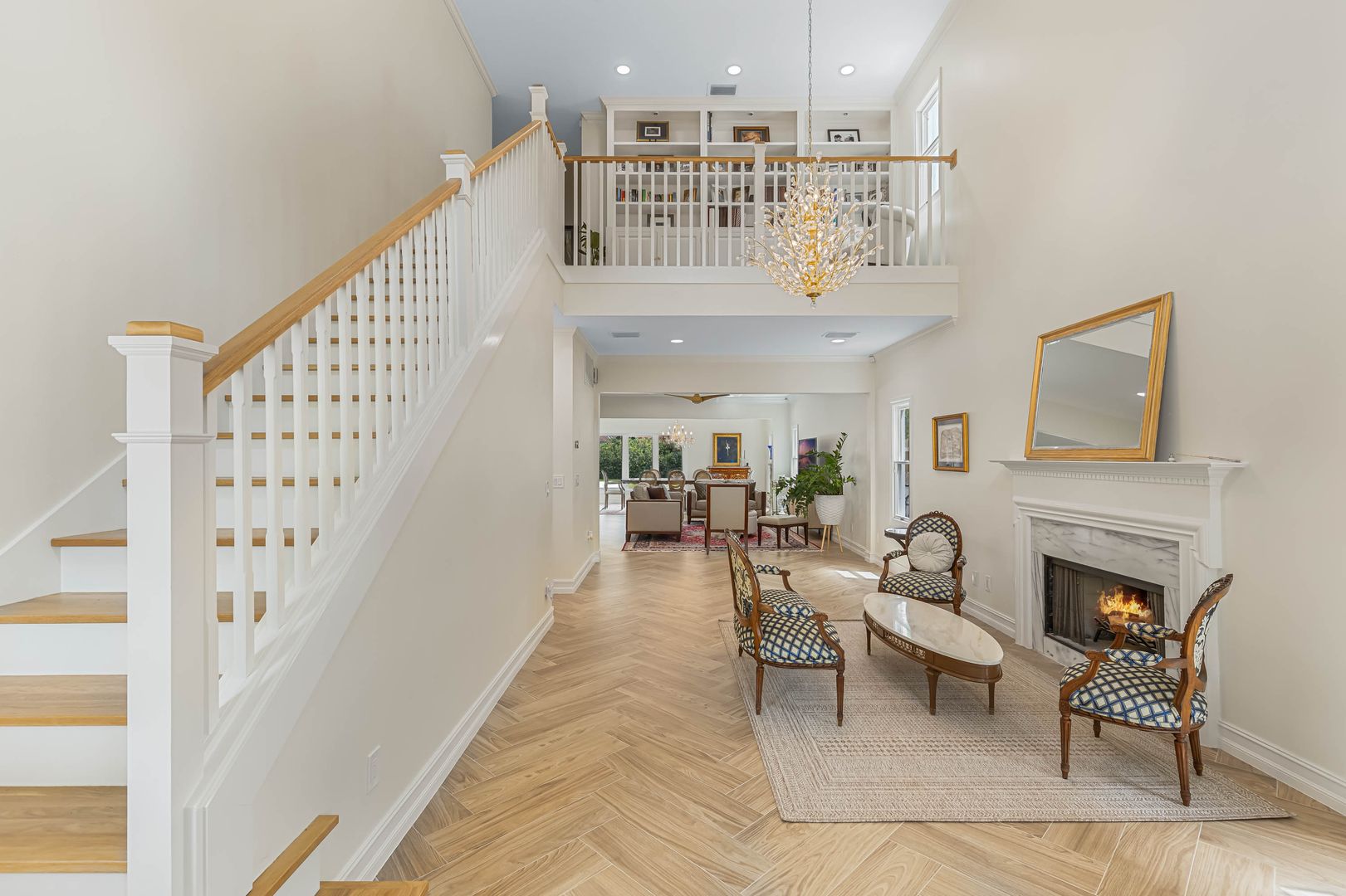 This elegant residence has undergone a major transformation, blending timeless charm with modern luxury. From the moment you step inside, you’ll be captivated by the abundance of natural light, soaring ceilings in the living room, and brand-new wood grain tile flooring that spans the entire first floor. The cozy wood-burning fireplace adds a classic touch—perfect for relaxing or entertaining guests.