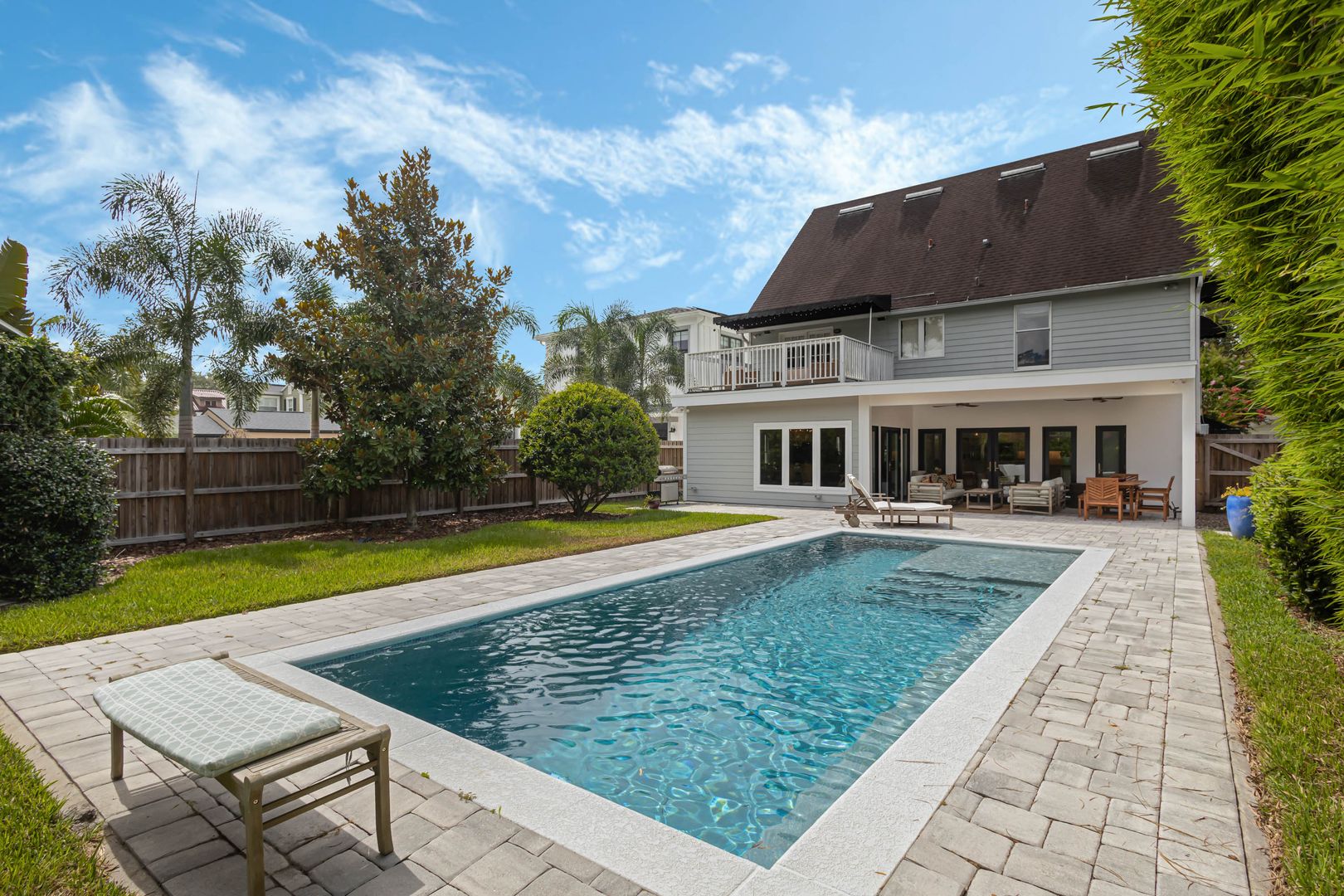 The main living area opens to the backyard through magnificent Sierra Nevada sliding doors, creating a seamless indoor-outdoor experience. Step outside into your private paradise featuring a large covered patio, a luxurious saltwater pool (installed in 2020), lush mature landscaping, a new fence (2020), storage shed, and a paver patio-perfect for swimming, grilling and outdoor entertainment.