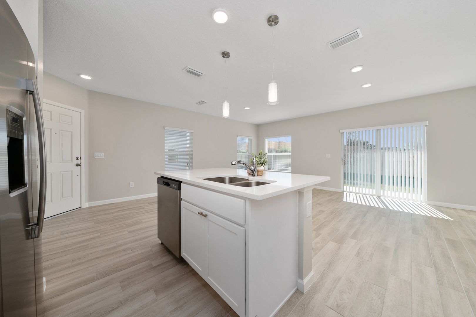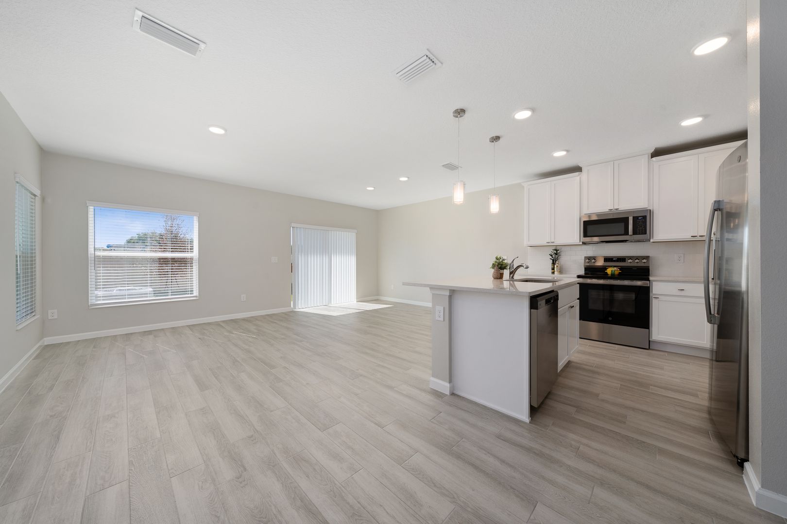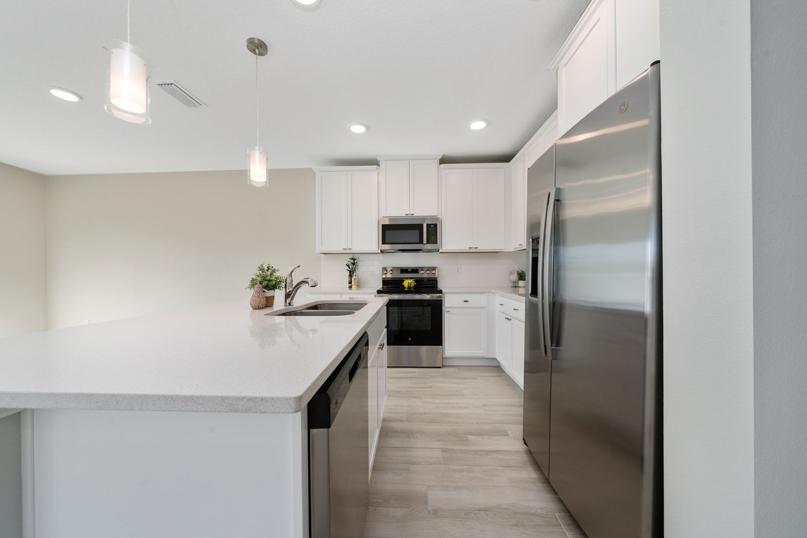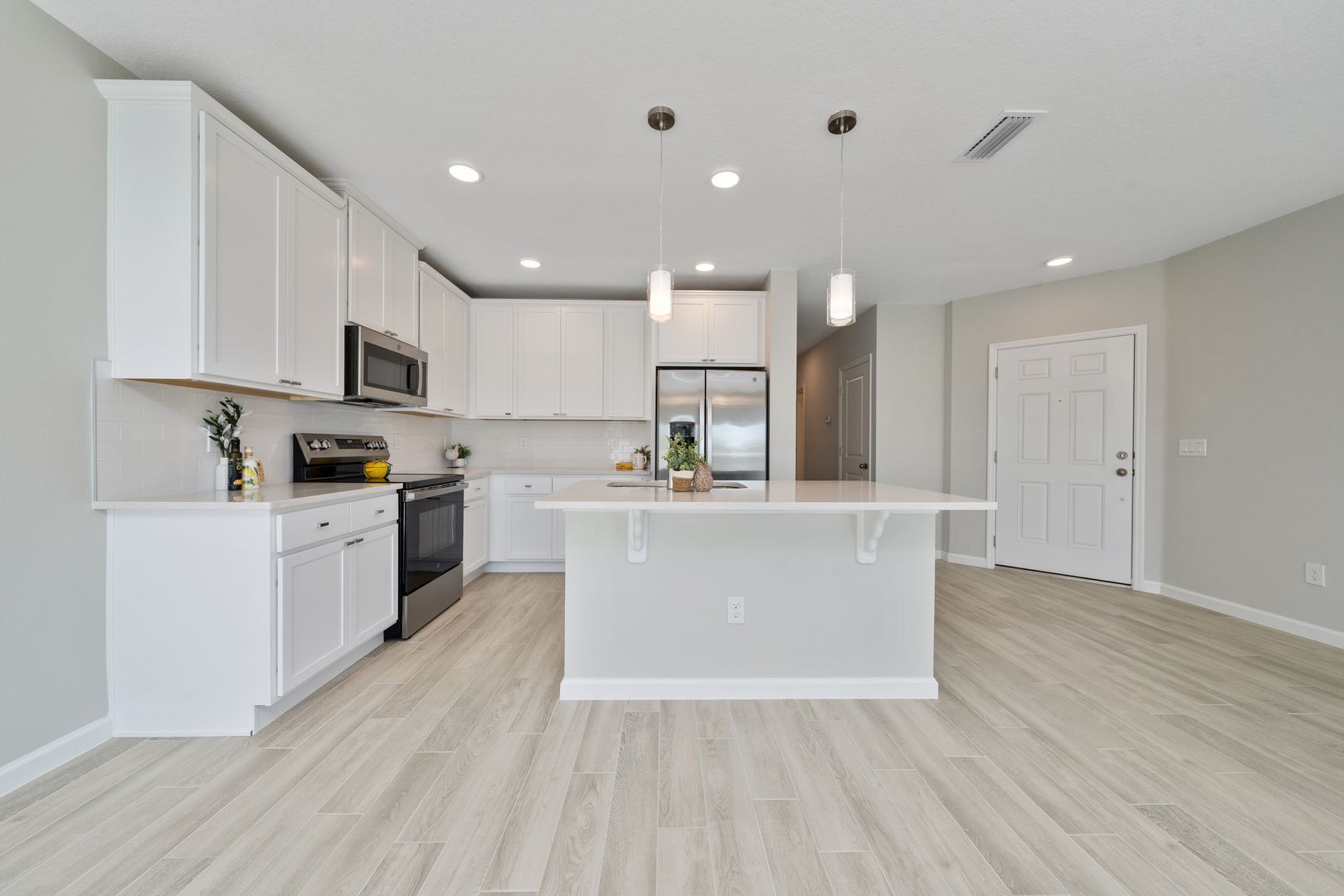 Luxury New Construction Townhouse for Rent! This stunning corner-lot townhouse offers 4 bedrooms, 3 bathrooms, and a one-car garage. Enjoy modern finishes throughout, including tile flooring in bathrooms and common areas on the first floor, and carpeted bedrooms for added comfort. The kitchen features elegant granite countertops, a stylish backsplash, stainless steel appliances, and beautiful pendant lights. Upstairs, the open area has been upgraded with a custom design wall panel and designer wallpaper accent wall. One bedroom and a full bathroom are conveniently located on the first floor. Situated directly in front of the guest parking area, this home combines luxury and convenience. Located just 7 minutes from the airport and only 1 mile from the new mall under construction on Lake Nona Blvd and 417, near Medical City, and just 20 minutes from Disney!