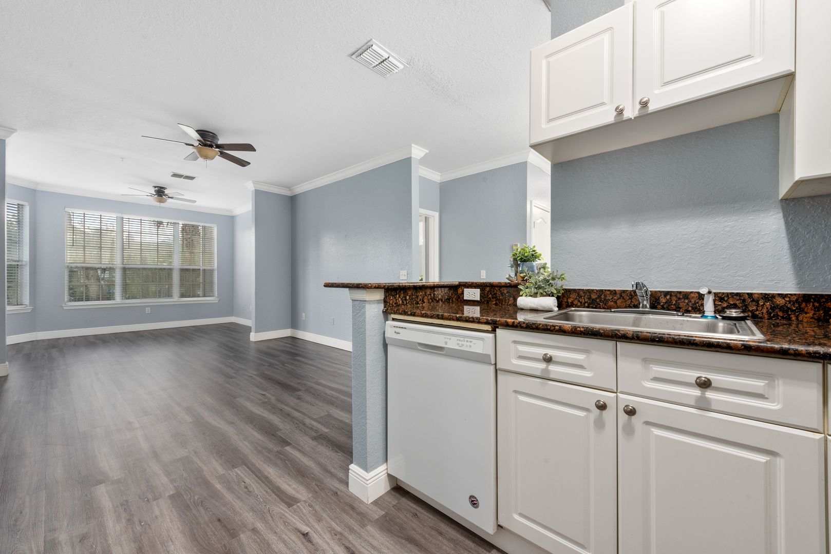 Don't miss this beautifully updated 2-bedroom, 2-bath condo in the Grand Reserve at Kirkman Park which offers a pool view and an open floor plan with like new laminate flooring and fresh paint throughout along with garage.